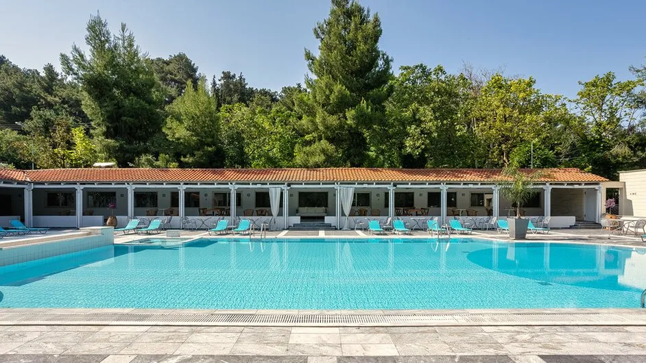 Sun Beach Agia Triada je gradski hotel kategorije 4 zvezdice, smešten u mirnom letovalištu Agia Triada, u Središnjoj Makedoniji, u Grčkoj. Nalazi se na oko 150 m od plaže sa plavom zastavicom, do koje se stiže prijatnom šetnjom kroz zelenilo, a oko 300 m od šetališta i centra mesta sa tavernama, kafićima i prodavnicama. Zahvaljujući odličnom položaju, hotel je udaljen oko 12–14 km od aerodroma u Solunu i oko 30 km od centra grada, što ga čini idealnom bazom i za odmor na moru i za obilazak Soluna. ([sun-beach.gr](https://www.sun-beach.gr/location/?utm_source=openai))