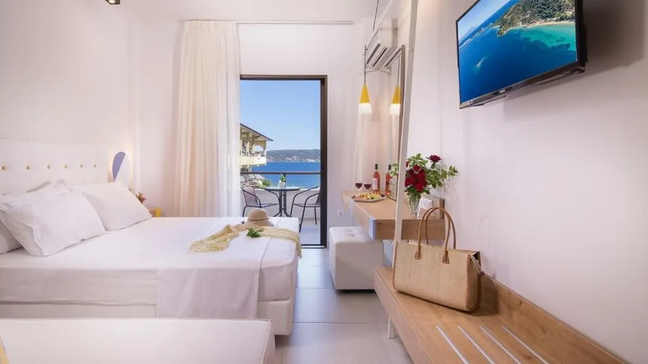 Hotel raspolaže sa oko 46 soba, namenjenih boravku 2–3 osobe, od standardnih dvokrevetnih do prostranijih trokrevetnih jedinica. Većina soba ima balkon ili terasu, često sa direktnim ili bočnim pogledom na more. Sve sobe su klimatizovane, opremljene televizorom, frižiderom, sopstvenim kupatilom sa tušem i fenom za kosu, uz svakodnevno održavanje higijene. U ponudi su i renovirane superior sobe sa modernijim nameštajem, idealne za goste koji žele dodatni komfor, dok su pojedine sobe u prizemlju prilagođene osobama sa otežanim kretanjem.