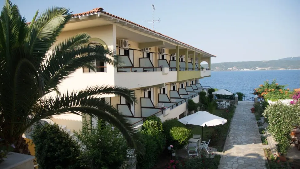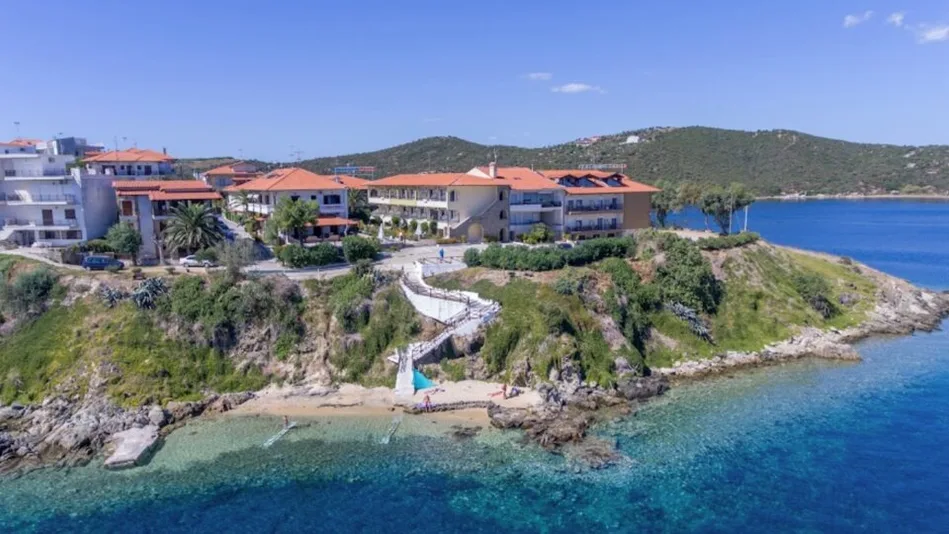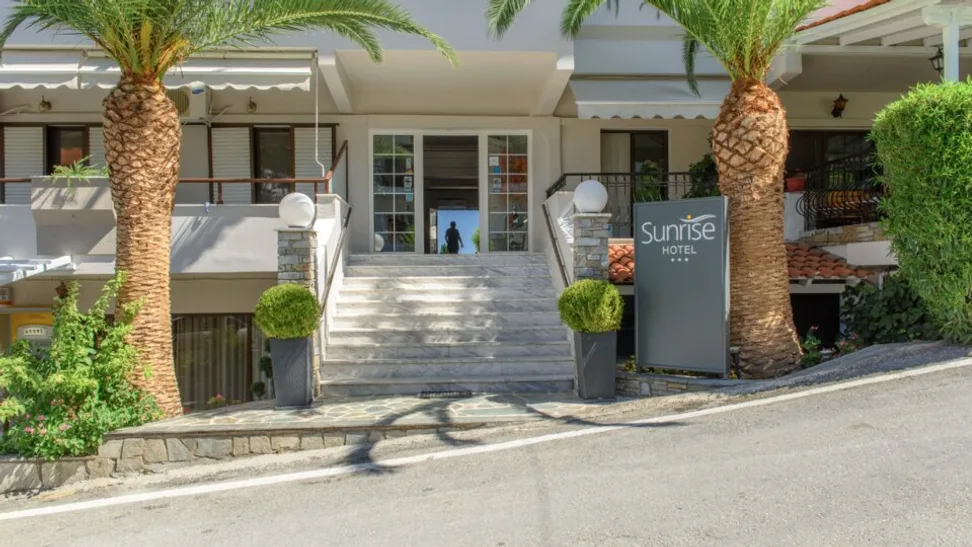 Hotel Sunrise je prijatan objekat sa 3 zvezdice, smešten na mirnoj lokaciji na ostrvu Ammouliani, na Halkidikiju, u Grčkoj. Izgrađen je na blagom uzvišenju, pa mnoge sobe i uređeno dvorište nude predivan pogled na more i zaliv Atosa. Najbliža mala plaža sa sitnim šljunkom nalazi se u neposrednoj blizini, do nje se stiže stepenicama, dok je prva uređena plaža sa ležaljkama i suncobranima udaljena oko 2 km od hotela. Centar ostrvskog naselja sa tavernama i prodavnicama je približno 200 m od objekta, a luka sa trajektnim pristaništem lako je dostupna pešice, što čini hotel odličnom polaznom tačkom za istraživanje ostrva.
