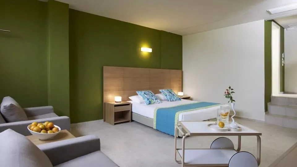 Smeštaj u hotelu obuhvata komforne i moderno uređene sobe i apartmane, sa naglaskom na prostranost i pogled na more ili borovu šumu. Na raspolaganju su standardne i superior sobe, luksuznije deluxe jedinice, kao i porodične sobe i apartmani idealni za veći broj gostiju. Svaka jedinica je klimatizovana, sa modernim kupatilom, balkonom ili terasom, a kapaciteti su prilagođeni kako parovima, tako i porodicama sa decom, uz mogućnost dodavanja dečjeg kreveta.