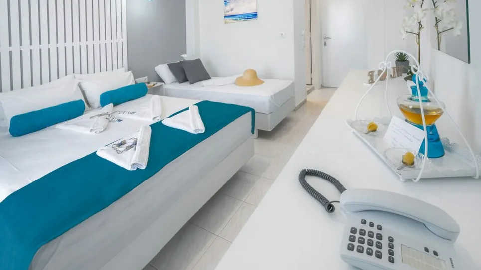 Smeštaj u objektu Thassian Riviera organizovan je u komfornim superior sobama i apartmanima. Dostupne su dvokrevetne i trokrevetne sobe, kao i veći apartman koji može da ugosti do šest osoba, što je idealno za veće porodice ili društvo prijatelja. Sve jedinice su moderno uređene, klimatizovane, sa zvučno izolovanim zidovima, sopstvenim kupatilom sa tušem, balkonom i prostorom za sedenje. Deo smeštajnih jedinica ima i praktičnu kuhinjsku nišu sa frižiderom i pločom za kuvanje, što dodatno olakšava boravak porodicama sa decom.