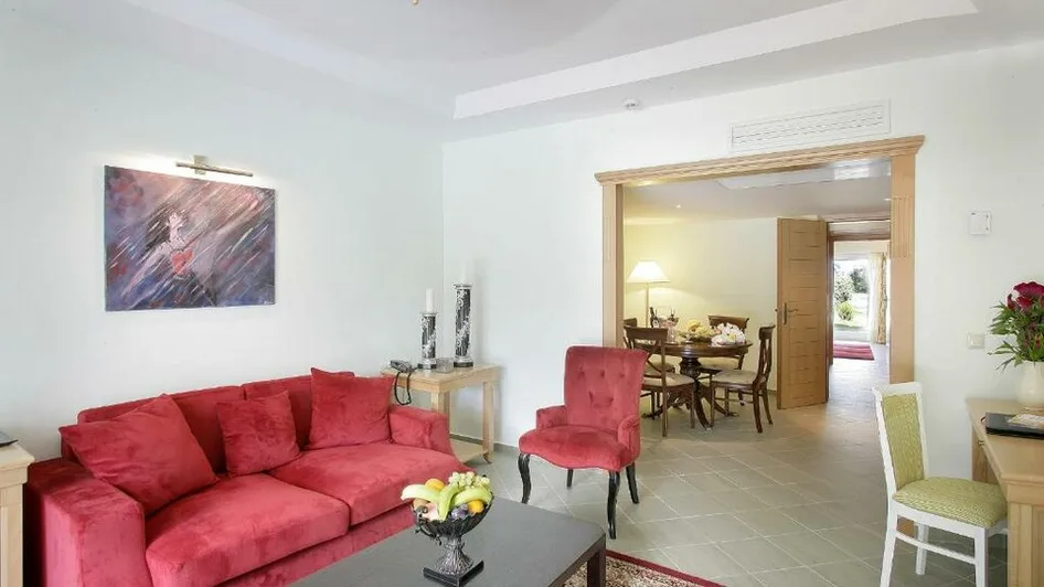Smeštaj u hotelu organizovan je u prostranim i elegantno uređenim sobama i apartmanima, od standardnih dvokrevetnih do porodičnih soba i većih apartmana, namenjenih zahtevnijim gostima. Većina jedinica poseduje balkon ili terasu sa pogledom na more, baštu ili bazen. Sobe su klimatizovane, opremljene modernim kupatilom, televizorom, mini frižiderom i sefom, a pažljivo odabrani detalji u enterijeru stvaraju osećaj topline i udobnosti. Porodicama će posebno odgovarati porodične sobe sa mogućnošću smeštaja dece na pomoćnim ležajevima ili sofama.
