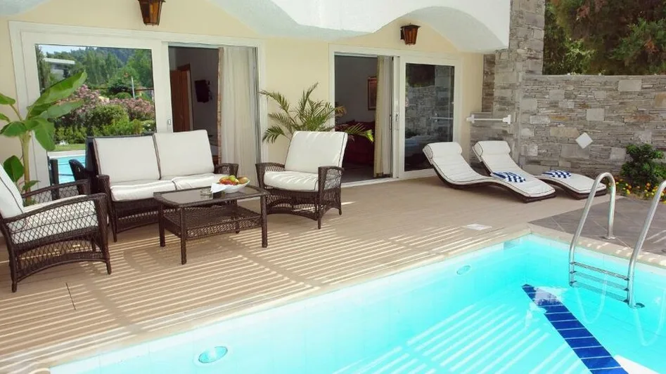 Hotel nudi bogat izbor sadržaja i usluga za sve uzraste. Gostima su na raspolaganju otvoreni bazen sa terasom za sunčanje, bar pored bazena, glavni restoran i elegantan a la kart restoran sa specijalitetima mediteranske kuhinje. Na plaži su obezbeđene ležaljke i suncobrani i peškiri za plažu, dok ljubitelji aktivnog odmora mogu uživati u košarci, odbojci na pesku, bilijaru i pikadu. Za potpuni odmor tela i duha, hotel nudi tretmane za telo i lice u okviru velnes usluga. Najmlađi gosti imaju dečje igralište, animaciju i sadržaje prilagođene deci, što hotel čini odličnim izborom za porodice.