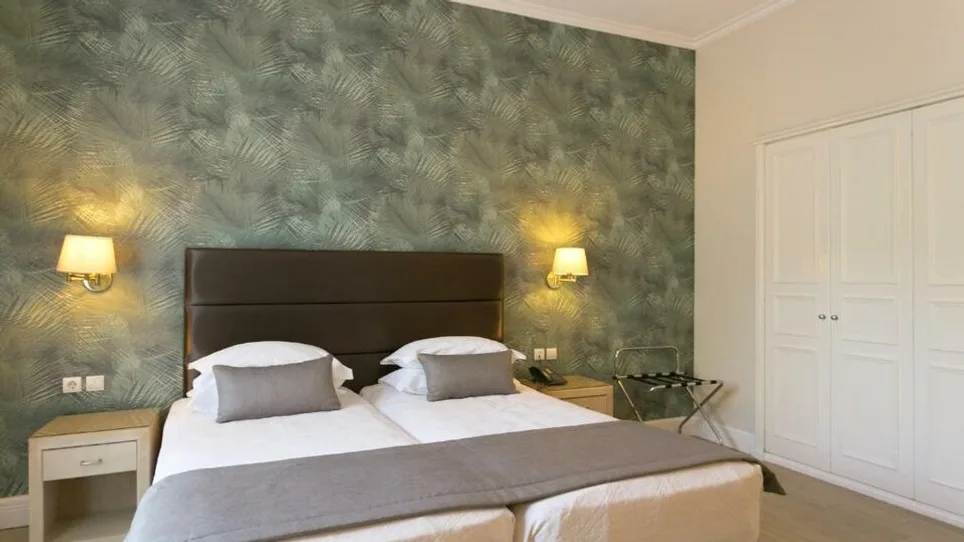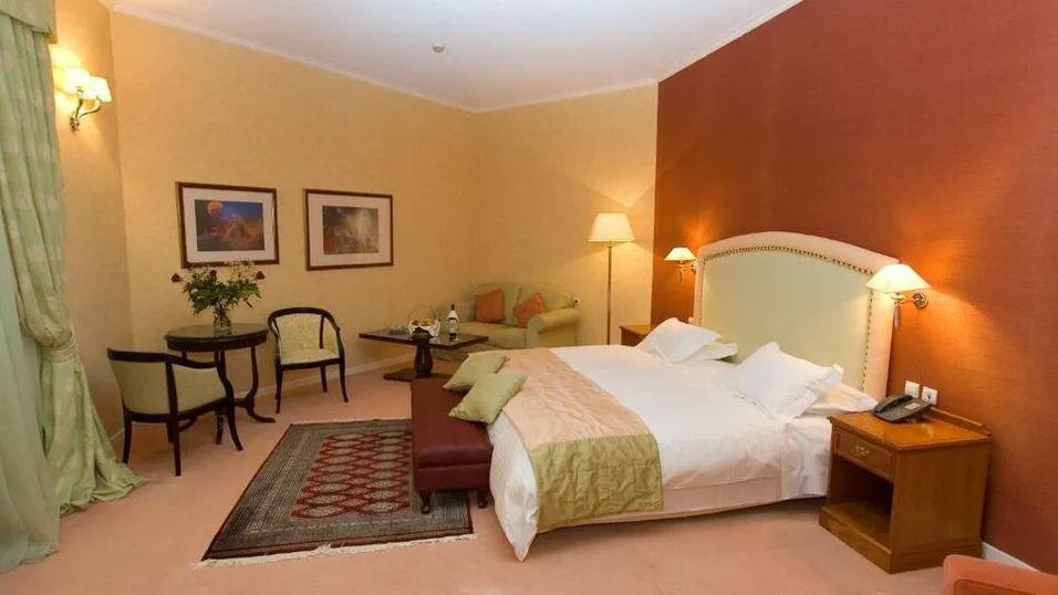 Hotel raspolaže sa oko 105 soba i apartmana različitih tipova, od standardnih dvokrevetnih soba do većih apartmana i luksuznih predsedničkih jedinica. Sobe su klasično i ukusno uređene, sa pogledom na more, bazen ili miran vrt, a većina ima balkon ili terasu. Kapacitet većine soba je do 2 osobe, dok pojedini veći apartmani primaju do 3–4 gosta, što ih čini pogodnim i za manje porodice. Sve smeštajne jedinice nude kupatilo sa kadom ili tuš kabinom, klima-uređaj, televizor, sef i bežični internet, uz mogućnost posluge u sobu.