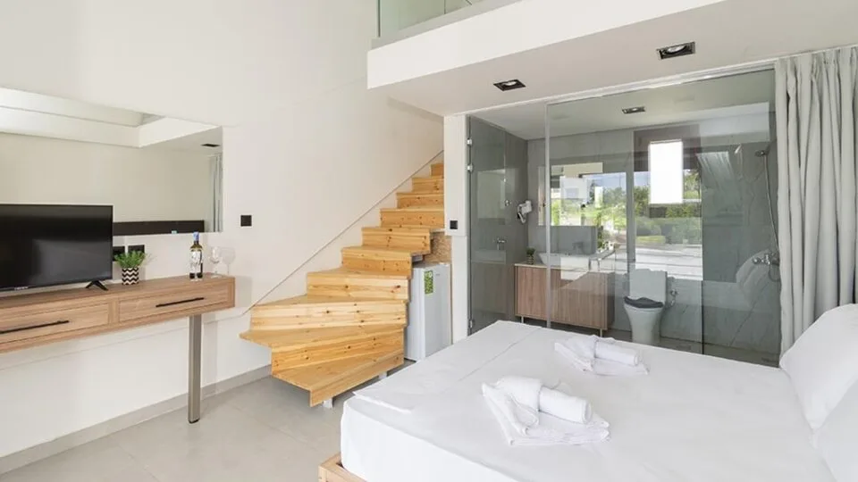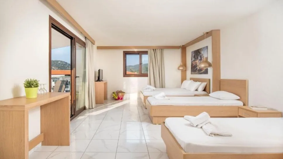 Smeštajne jedinice su raspoređene u dva krila oko bazena i obuhvataju standardne sobe, porodične sobe, duplekse i apartmane, ukupno 85 soba. Standardne sobe uglavnom primaju do 3 odrasle osobe i jedno dete, dok su porodične sobe i apartmani prilagođeni komfornom boravku roditelja sa decom, sa odvojenim prostorom za spavanje i dnevnim delom. Sve jedinice su klimatizovane, imaju balkon ili terasu, kupatilo, frižider, televizor i bežični internet, a deo soba nudi i pogled na more ili bazen, što dodatno pojačava ugođaj mediteranskog odmora.