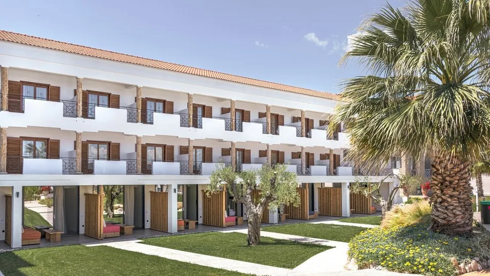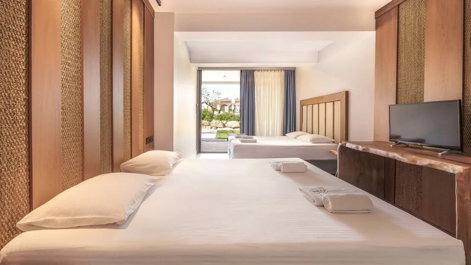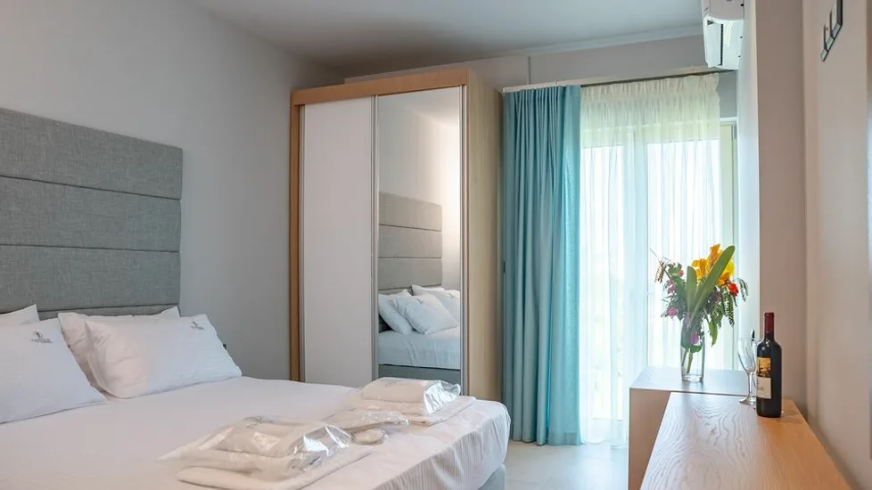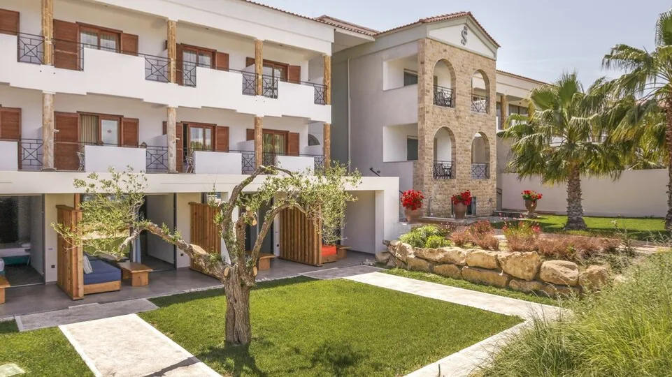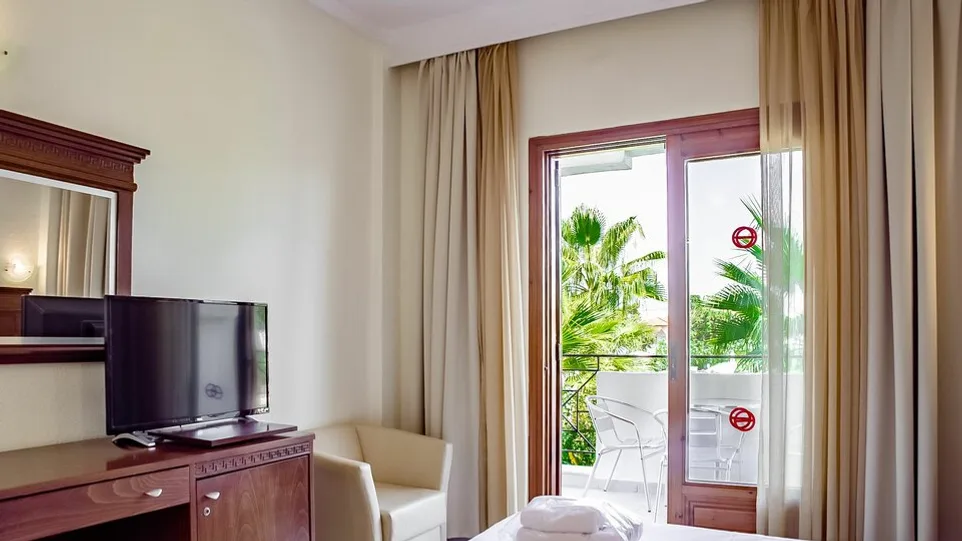 Smeštajne jedinice su uređene u prijatnom, mediteranskom stilu i obuhvataju standardne dvokrevetne i trokrevetne sobe, porodične sobe i apartmane. Hotel raspolaže sa oko 100 soba, većina sa balkonom i pogledom na bazen ili uređeni vrt. Standardne sobe su predviđene za 2–3 osobe, dok su porodične sobe i apartmani prostraniji, sa odvojenim spavaćim delovima, pogodnim za smeštaj većih porodica ili društava. Sve jedinice imaju kupatilo, fen, centralnu klimatizaciju, televizor sa satelitskim kanalima, mini frižider i telefonsku liniju, a sef se može koristiti uz doplatu.