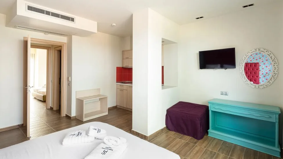 Ovaj apart hotel raspolaže sa ukupno 29 smeštajnih jedinica, pažljivo uređenih u modernom mediteranskom stilu. Gostima su na raspolaganju standardne sobe bez kuhinje, studiji sa opremljenim kuhinjskim kutkom, kao i prostraniji apartmani sa odvojenom spavaćom sobom, pogodni za porodice ili veće društvo. Sve jedinice imaju klima-uređaj, frižider ili mini-bar, sef, televizor sa satelitskim kanalima, kupatilo sa fenom, kao i balkon ili terasu, od kojih mnogi nude prelep, delimičan ili direktan pogled na more.