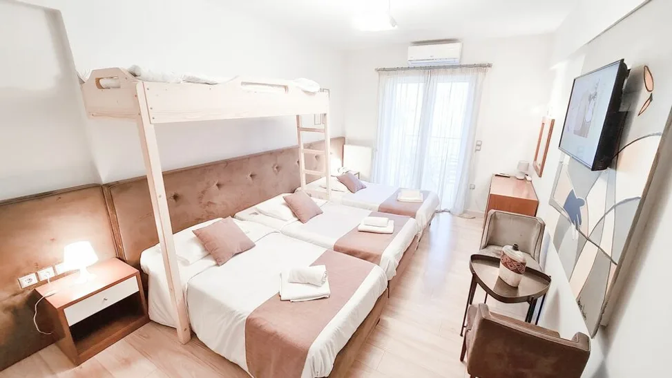 Hotel raspolaže sa ukupno 29 soba, uređenih u modernom, minimalističkom stilu. Gostima su na raspolaganju standardne dvokrevetne sobe, udobne porodične sobe, kao i veći apartmani sa pogledom na more, idealni za duži boravak. Sve smeštajne jedinice imaju balkon, kupatilo sa tušem, televizor ravnog ekrana, klima-uređaj i pribor za pripremu kafe i čaja, dok su porodične sobe prostranije i prilagođene boravku sa decom. Neke jedinice nude i hidromasažni tuš, za dodatnu dozu opuštanja nakon dana provedenog na plaži ili u razgledanju okoline.