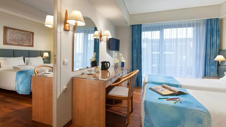 Hotel raspolaže sa ukupno 38 soba, podeljenih na standardne jednokrevetne i dvokrevetne, trokrevetne sobe, prostranije „executive” sobe, porodične sobe i apartmane. Većina soba ima balkon, deo njih nudi direktan ili bočni pogled na more, dok porodične sobe i apartmani pružaju dodatni komfor za više osoba. Sobe su klimatizovane, sa zvučno izolovanim prozorima, mini barom, sefom, televizorom sa satelitskim kanalima i bežičnim internetom, a moderno uređena kupatila opremljena su fenom i toaletnim priborom.