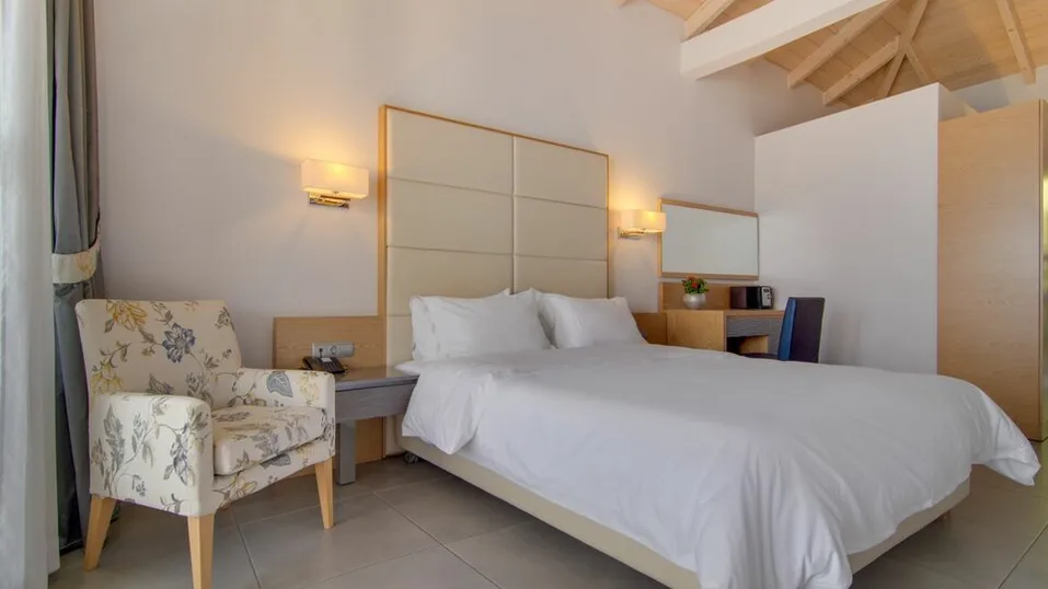 Hotel raspolaže sa oko 70–80 smeštajnih jedinica, raspoređenih u nekoliko nivoa i aneks zgrada, većina sa pogledom na more ili vrt. U ponudi su standardne i komforne dvokrevetne sobe, trokrevetne sobe, porodične sobe i apartmani, idealni za smeštaj porodica sa decom ili društava prijatelja. Sve jedinice kombinuju tradicionalne elemente sa modernim detaljima, klimatizovane su i opremljene televizorom, mini frižiderom i balkonom ili terasom. Pojedini apartmani imaju i malu kuhinju ili prostranije kupatilo sa tuš kabinom ili kadom.