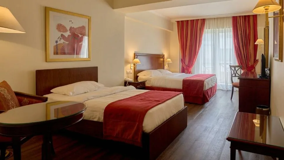 Hotel raspolaže sa ukupno 72 sobe, raspoređene na više spratova, sa pogledom na grad ili more. Standardne dvokrevetne sobe nude jedan francuski ili dva odvojena ležaja, dok trokrevetne sobe imaju dodatni ležaj ili kauč na razvlačenje, pogodne za porodice sa jednim detetom. Na raspolaganju su i prostraniji apartmani, uključujući veće apartmane sa dnevnim boravkom, idealne za duži boravak ili zahtevnije goste. Sve smeštajne jedinice su klimatizovane, sa sopstvenim kupatilom od mermera, bežičnim internetom, mini-barom, sefom i zvučno izolovanim prozorima, što obezbeđuje miran san i udobnost.