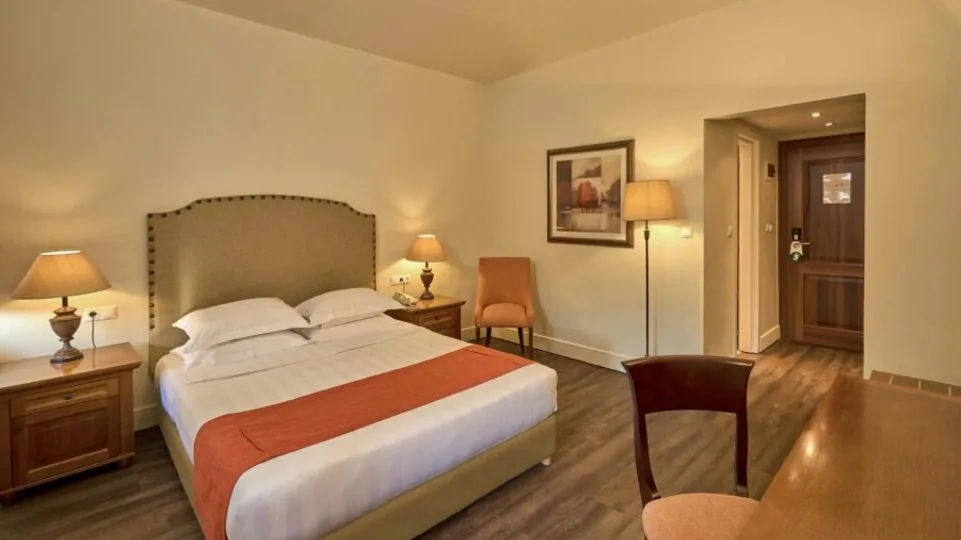 Hotel raspolaže sa oko 100 smeštajnih jedinica, uređenih u toplom, klasičnom stilu, sa naglašenim detaljima u drvetu i kamenu. U ponudi su standardne dvokrevetne sobe, prostranije porodične sobe, kao i apartmani sa panoramskim pogledom na more ili planinu. Sve sobe imaju balkon ili terasu, klima-uređaj, televizor, sef i bežični internet. Porodične sobe i apartmani idealni su za smeštaj roditelja sa decom, dok romantično uređeni apartmani sa pogledom na zaliv predstavljaju odličan izbor za parove koji traže mir i udobnost.