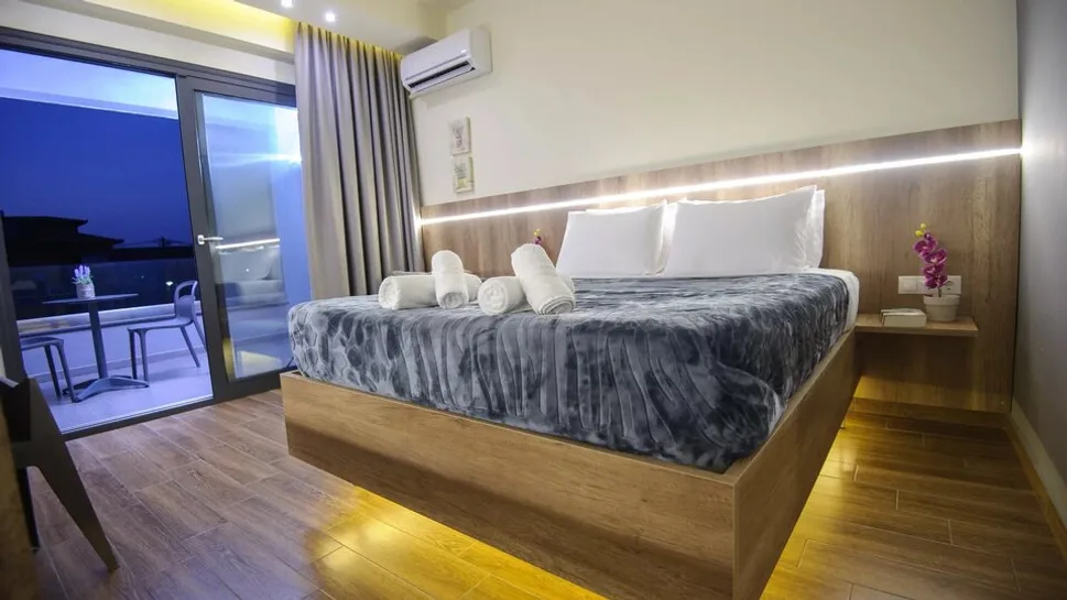 Smeštajne jedinice u hotelu Yakinthos su funkcionalno uređene, sa svetlim bojama i jednostavnim, modernim nameštajem. Gostima su na raspolaganju dvokrevetne i trokrevetne sobe, kao i porodične sobe sa dodatnim ležajem ili pomoćnim krevetom za decu. Sve sobe imaju balkon, klima-uređaj, televizor, frižider, opremljenu čajnu kuhinju i kupatilo sa tušem i fenom za kosu, što boravak čini udobnim i praktičnim i za duže letovanje.
