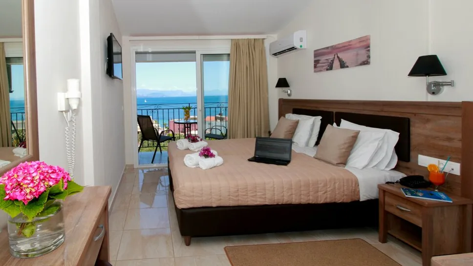 Hotel raspolaže moderno uređenim dvokrevetnim i trokrevetnim sobama, kao i superior sobama sa panoramskim pogledom na more. Ukupno ima oko 60 soba, većina sa balkonom ili terasom, klima-uređajem, frižiderom, sefom i televizorom. Sobe su funkcionalno opremljene, sa svetlim bojama i detaljima koji stvaraju prijatnu mediteransku atmosferu, idealne kako za parove, tako i za porodice sa jednim ili dvoje dece.