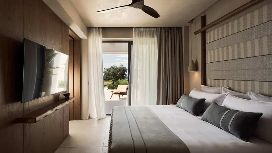 Hotel raspolaže sa ukupno oko 120 soba i apartmana, pažljivo dizajniranih u boho-luks stilu, u toplim zemljanim tonovima, sa prirodnim materijalima i velikim staklenim površinama. Standardne dvokrevetne sobe sa francuskim ležajem namenjene su za 2 odrasle osobe, dok veći apartmani nude dodatni prostor za dnevni boravak, neke jedinice i direktan izlaz na bazen ili sopstveni mali bazen. Sve smeštajne jedinice imaju balkon ili terasu sa pogledom na baštu ili more, klima-uređaj, moderno kupatilo, televizor ravnog ekrana i bežični internet, što obezbeđuje visok nivo komfora za goste koji traže miran i opuštajući odmor. ([zeliaresort.gr](https://www.zeliaresort.gr/?utm_source=openai))
